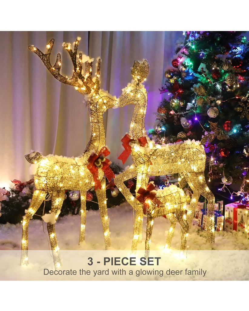 Christmas Decoration Deer 3 Piece, Light up Christmas Decor Reindeer Family Set